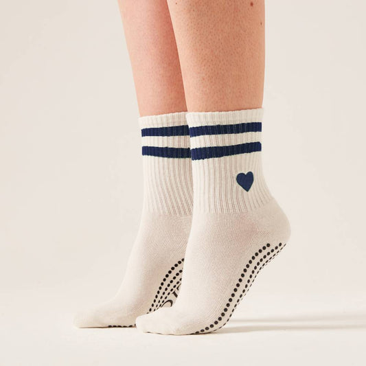 LIGN Navy Heart Two Cream Stripe Tube Socks