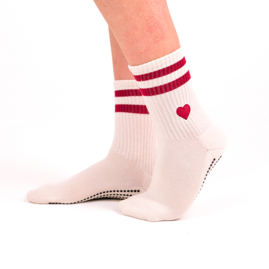 LIGN Red Heart Two Cream Stripe Tube Socks