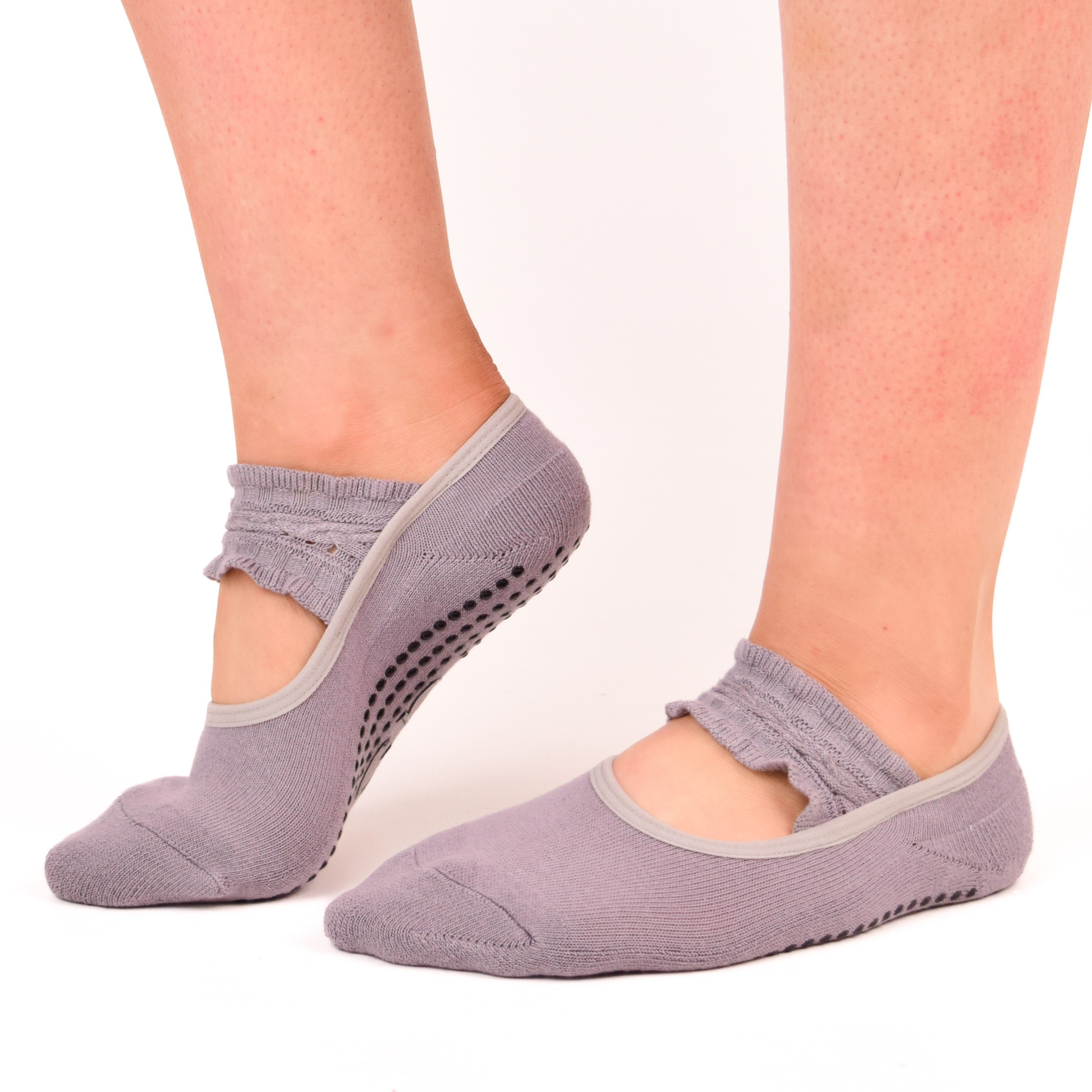LIGN Grey Ballet Ruffle Grip Socks